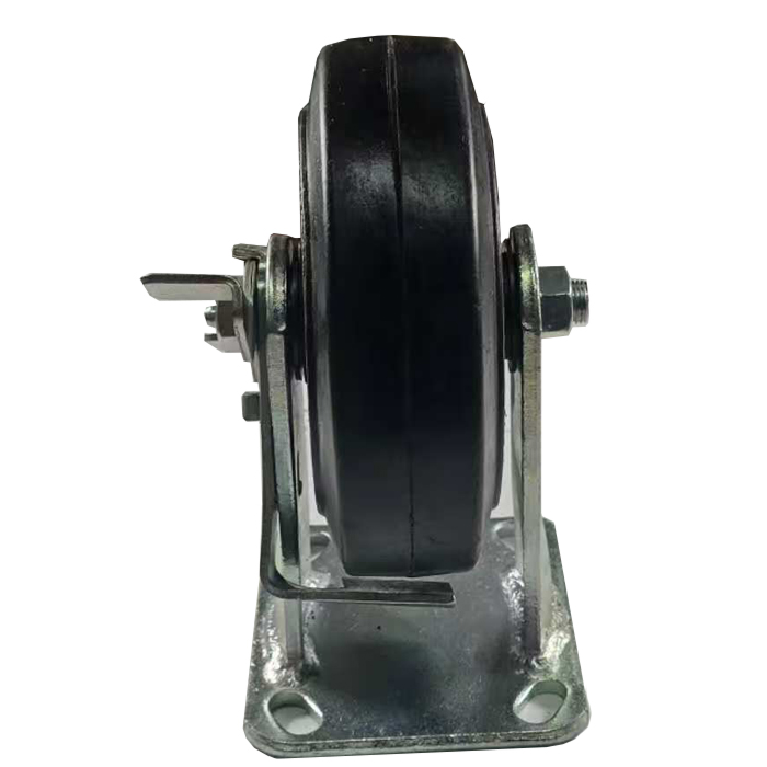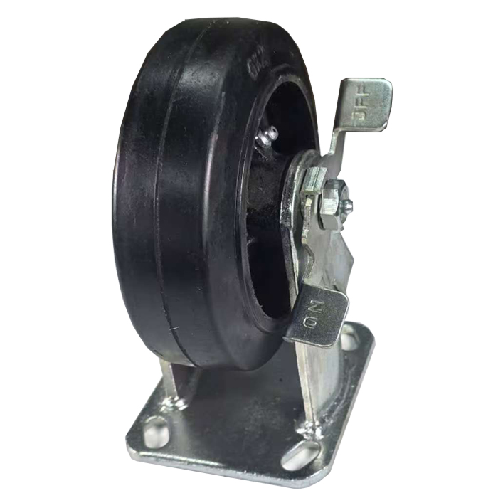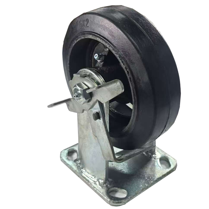 6″ x 2″ Rigid Caster with Mold-On Rubber on Cast Iron Wheel & Pedal Brake