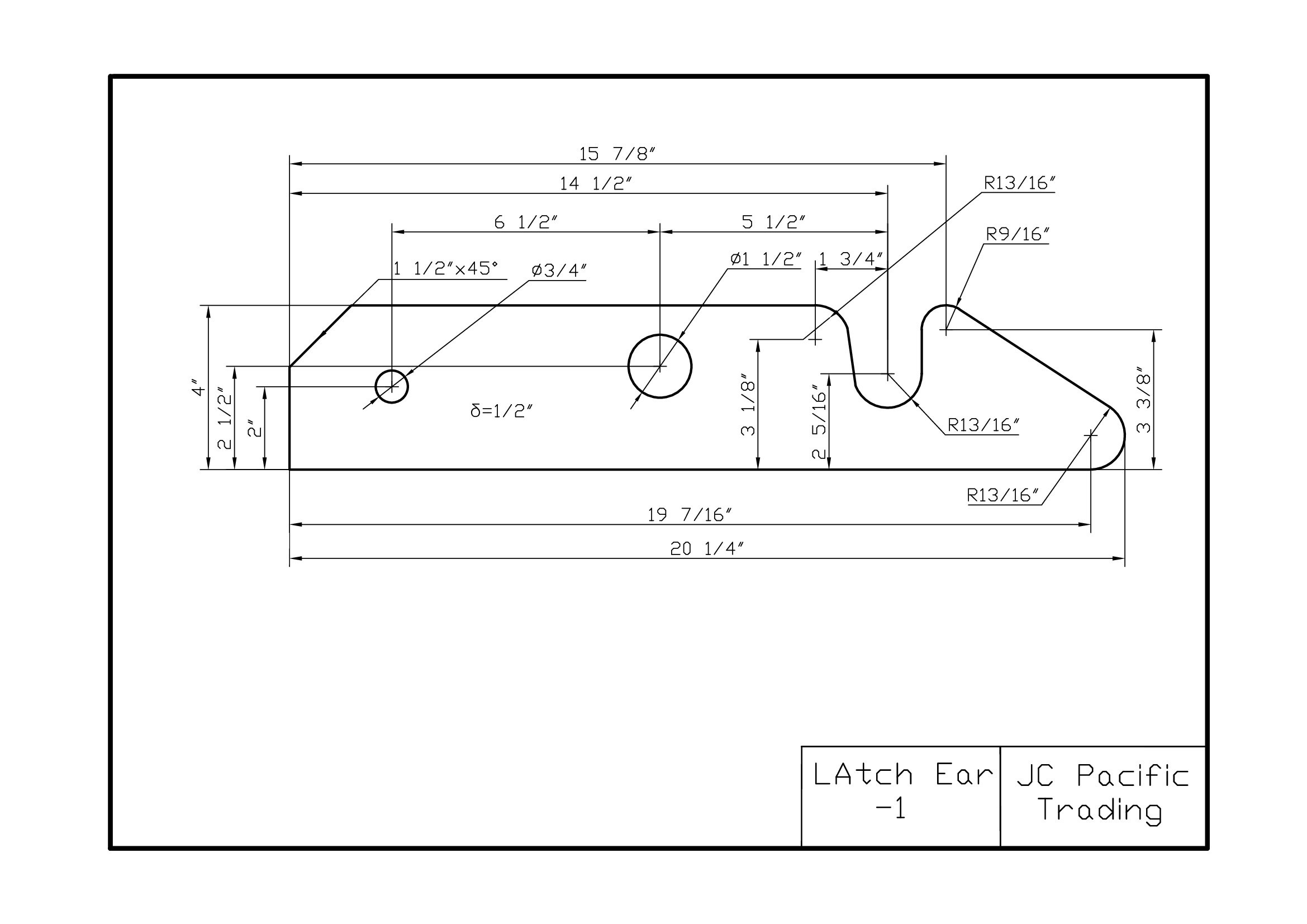 Roll-off container’s door latch system secures tailgate in a closed position with standard hook ears. This latch hook ear is a replacement part in case the original latch ear is broken. It is a full steel piece – 20.25” long, 4” wide and o.5” thick, and only used at the bottom part of latch system. The upper latch hook ear is a different piece.